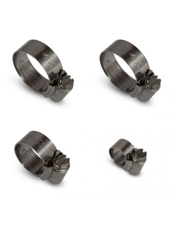 These hose clamps are entirely made from marine-grade 304 W5 stainless steel and have a 13mm wide band which increases their clamping force.