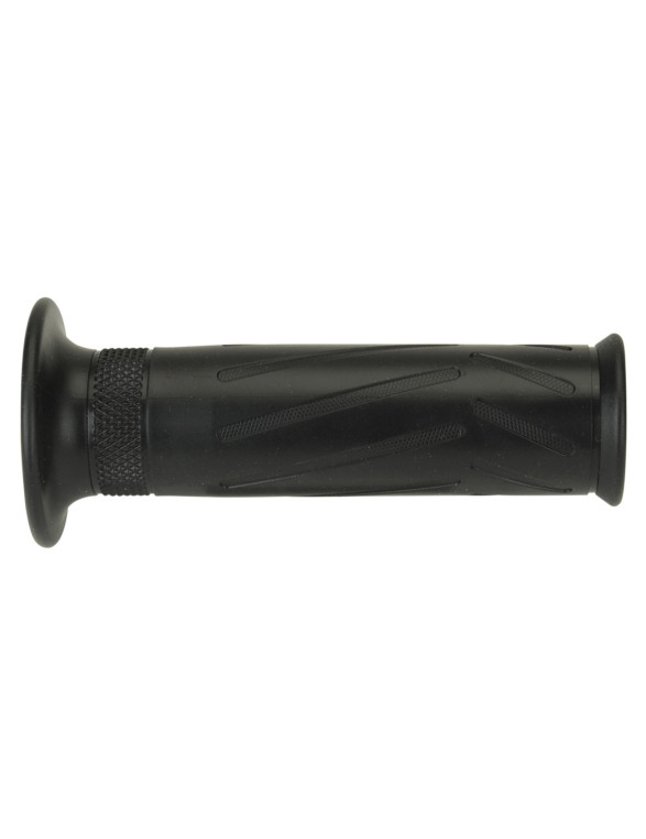 These black, open-ended grips are manufactured from a high-quality, durable thermoplastic rubber compound to provide excellent comfort and vibration damping. At a standard length of 120mm, they are intended to fit common 7/8 inch (22mm) handlebars and are suitable for use with bar-end weights or mirrors.
