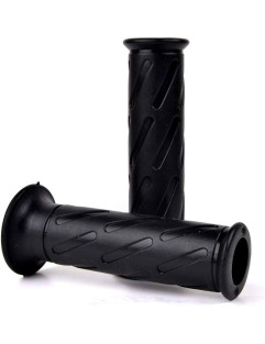 These grips are manufactured from a durable thermoplastic rubber compound and feature a multi-conical external finish (full knurl) that ensures excellent non-slip traction and progressive wear. They are 120mm in length and the open ends allow for the use of bar-end weights or mirrors on standard 7/8 inch (22mm) handlebars.