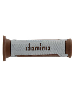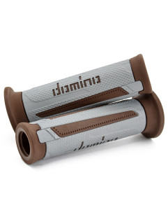 A pair of Silver/Brown "Turismo" road grips, specifically designed to maximize comfort for street bikes, touring motorcycles, and maxi-scooters.