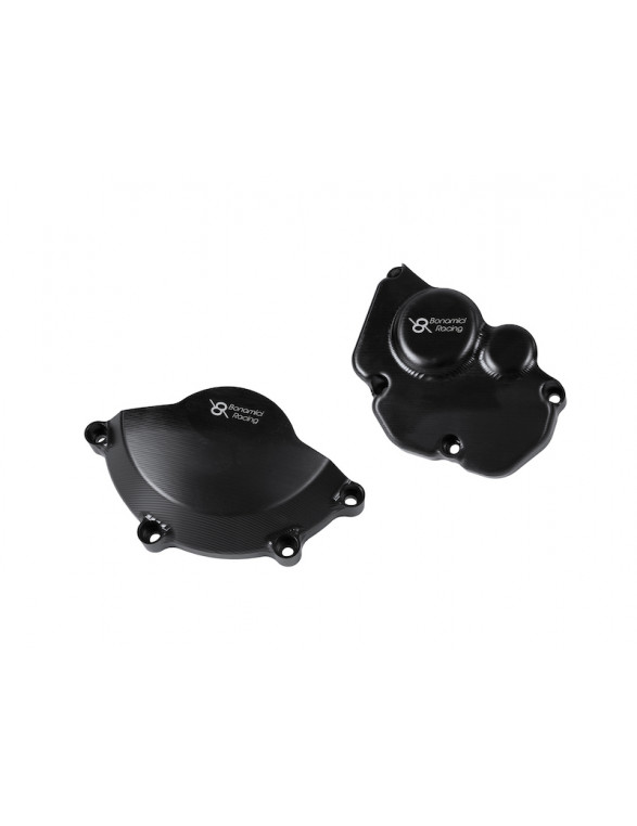 Made by high-strength aluminum alloy, machined from solid with CNC technology and finished with black anodizing, the engine cover kit perfectly protects the carter during falls and slides. It is composed by two or three elements, depending by the model, who protect the carter on both sides of the bike.
