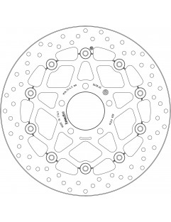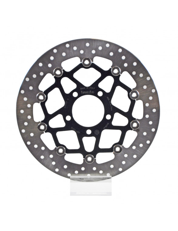 Floating discs are made from only the highest quality materials available to deliver unparalleled performance. These consist of a braking rotor in stainless steel, connected by 10 fastener screws to a CNC machined anodised aluminium alloy housing. Drawing from its immense experience, Brembo has defined the optimum geometries, tolerances and dimensions for each motorcycle type and application. As a result of specific studies into process and machining tolerances, Brembo brake discs have a unique conformation that transfers braking torque more effectively while also improving resistance to thermal and mechanical stress.