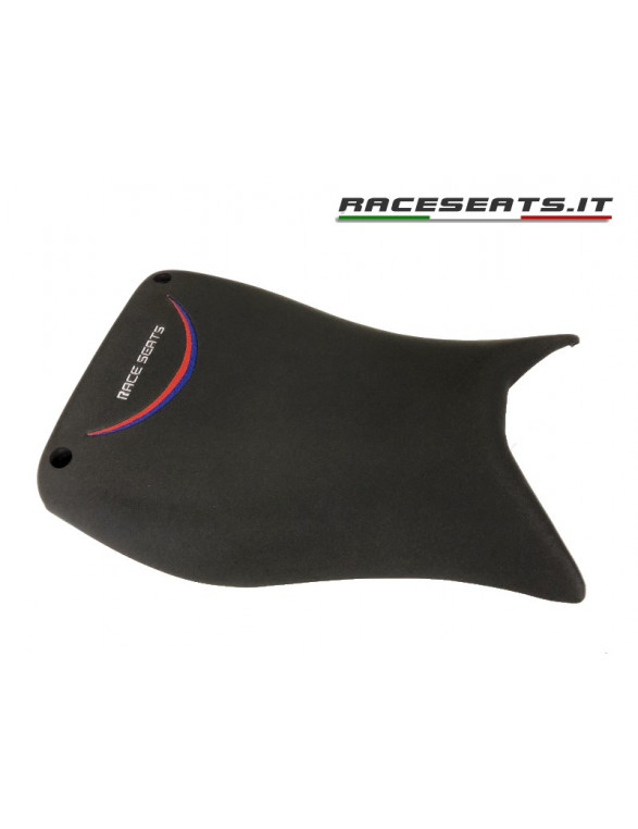 Seat built on hand-made carbon base, close for a racing use, has a light rigid foam inside covered with a 3mm layer of High Density special Mousse, it's the same material chosen and used by several Motogp , Moto2, Moto3 and SBK worlwide teams for their riders. HDM is our TOP quality material, which comes from competitions, the best for track use. It guarantees a perfect grip and improves the motorbike feeling also in wet conditions. It is less subject to usury than traditional neopren seats. Carbon-fibre seat plate is a rigid light structure handmade from Italian high quality company.