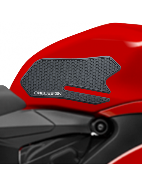 OneDesign tank pad made of high resistant coloured resin: risists fading while high strength adhesive keeps the pad attached. Rubber textured material protects your paint from scratches and provide better grip so you can feel confident with your motorcycle. OneDeign tank pads are designed to perfectly fit your motorcycle fuel tank.