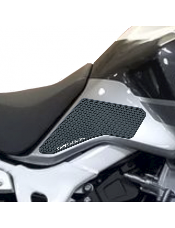 OneDesign tank pad made of high resistant coloured resin: risists fading while high strength adhesive keeps the pad attached. Rubber textured material protects your paint from scratches and provide better grip so you can feel confident with your motorcycle. OneDeign tank pads are designed to perfectly fit your motorcycle fuel tank.