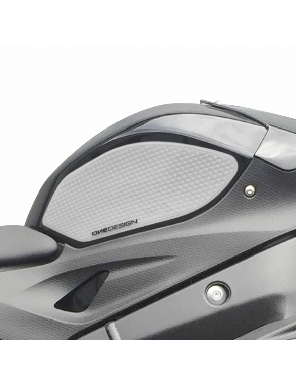 OneDesign tank pad made of high resistant coloured resin: risists fading while high strength adhesive keeps the pad attached. Rubber textured material protects your paint from scratches and provide better grip so you can feel confident with your motorcycle. OneDeign tank pads are designed to perfectly fit your motorcycle fuel tank.
