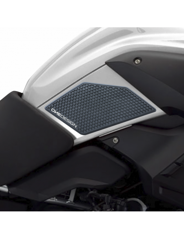 OneDesign tank pad made of high resistant coloured resin: risists fading while high strength adhesive keeps the pad attached. Rubber textured material protects your paint from scratches and provide better grip so you can feel confident with your motorcycle. OneDeign tank pads are designed to perfectly fit your motorcycle fuel tank.