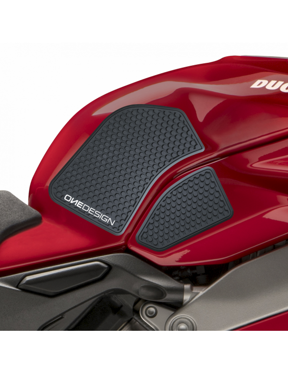 OneDesign tank pad made of high resistant coloured resin: risists fading while high strength adhesive keeps the pad attached. Rubber textured material protects your paint from scratches and provide better grip so you can feel confident with your motorcycle. OneDeign tank pads are designed to perfectly fit your motorcycle fuel tank.