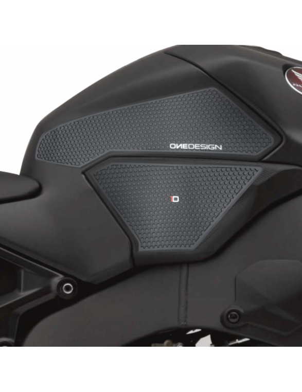 OneDesign tank pad made of high resistant coloured resin: risists fading while high strength adhesive keeps the pad attached. Rubber textured material protects your paint from scratches and provide better grip so you can feel confident with your motorcycle. OneDeign tank pads are designed to perfectly fit your motorcycle fuel tank.