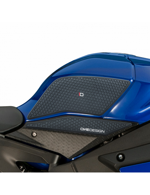 OneDesign tank pad made of high resistant coloured resin: risists fading while high strength adhesive keeps the pad attached. Rubber textured material protects your paint from scratches and provide better grip so you can feel confident with your motorcycle. OneDeign tank pads are designed to perfectly fit your motorcycle fuel tank.