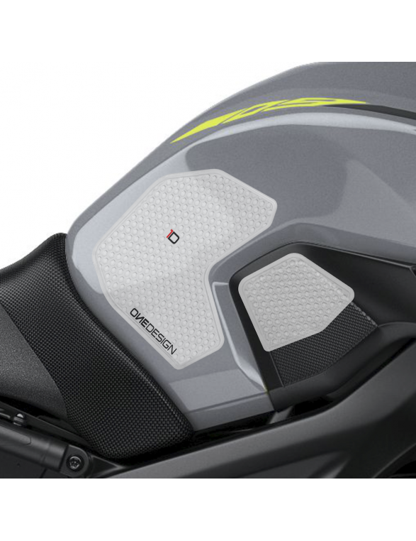 OneDesign tank pad made of high resistant coloured resin: risists fading while high strength adhesive keeps the pad attached. Rubber textured material protects your paint from scratches and provide better grip so you can feel confident with your motorcycle. OneDeign tank pads are designed to perfectly fit your motorcycle fuel tank.