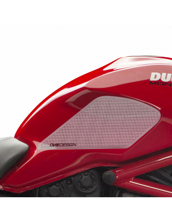 OneDesign tank pad made of high resistant coloured resin: risists fading while high strength adhesive keeps the pad attached. Rubber textured material protects your paint from scratches and provide better grip so you can feel confident with your motorcycle. OneDeign tank pads are designed to perfectly fit your motorcycle fuel tank.