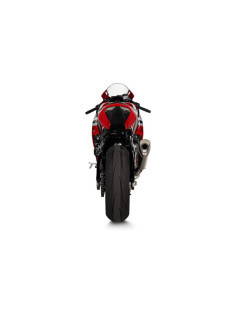 This full system is complete with a lightweight titanium muffler and stainless steel headers, providing a weight savings alongside increased power and torque gains. The stunning sporty Akrapovič sound is ideally suited to the bike’s racing culture. Optional Track day Link pipe/Collector (Stainless steel) lowers the noise levels for use on racetracks where lower noise levels are required.Carbon fibre muffler bracket (needed for mounting if passenger footrests are removed) is already included within the system.For perfect performance, throttle response and durability, ECU remapping is mandatory.When installing the Racing Line exhaust system on Euro5+ motorbikes (2 lambda sensors), the engine check light might appear after identifying a deviation in the stock catalytic converter´s parameters.THIS PRODUCT DOES NOT MEET EMISSION COMPLIANCE REQUIREMENTS FOR STREET OR HIGHWAY USE.