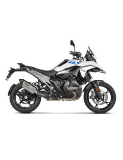 Developed exclusively for the BMW R 1300 GS from years of experience working with the BMW GS range and its boxer engines. A double flow muffler constructed from lightweight titanium and a handmade carbon-fibre end cap gives a weight saving of 9.3% over standard stock. Created for improved performance and enhanced sound silencing, which mitigates the impact on the environment, whilst delivering a deep, full sound. A special profiled surface on the muffler adds strength and durability and is finished with an engraved logo. Power and torque increases of 1.4kW (1.9hp) at 7,600rpm and 4.5Nm at 2,300rpm. These figures were obtained in back-to-back runs on the Akrapovič dyno against a BMW R 1300 GS using a standard stock exhaust. EC/ECE-type approval, simple plug and play installation with no remapping required. Once installed the system is all fully compatible with BMW Motorrad's side cases.
