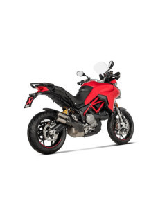 Slip-Ons represent the first step in the exhaust system tuning process, and they offer a great balance between price and performance. The Grand Prix–inspired twin conical mufflers are made entirely from titanium, a race-proven material. Beautifully finished with a carbon-fibre heatshield, the exhaust offers an increase in performance and a deeper, more rewarding sound, while meeting EC-ECE type approval.Exhaust system can be fitted with Ducati side cases and central stand.