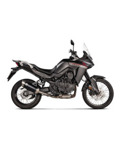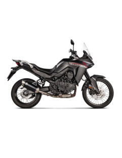 Constructed from race-proven materials, this exhaust has a black-coated titanium outer sleeve on the muffler and features a newly designed end cap, also made of lightweight titanium, like the bracket. It is finished with a stainless-steel link pipe and muffler inner structure. Weighing 39.8% (1.6 kg) less than the standard stock exhaust, it offers performance gains in the mid and high rev ranges. During development, the engineers focused on throttle response and rideability, resulting in increased power figures of 0.7 kW (0.9 hp) and a torque enhancement of 1.3 Nm, both at 5,700 rpm when compared to a standard stock system and tested on the Akrapovič in-house dyno.This Euro 5 exhaust has been designed to meet EC/ECE type approval while providing better performance and a deep, sporty sound. It is a simple plug and play installation with no remapping needed, fully compatible with the original Honda side panniers.