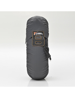 Tyre warmer for motorcycle racing with electronically controlled temperature from the control unit inserted on the tie-strap. It allows adjustment on three pre-set levels, 50°C – 90°C – 110°C with a LED indicator and selection key.Made with a rubberised external fabric, flame-retardant internal fabric, and neoprene skirts.
