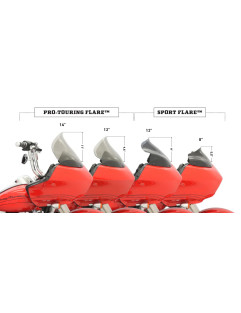 Size Selection: Size matters! Too tall or too short, and a Flare® won’t manage air like it should. Check out our ‘Size Guide’ online to choose the right fit and remember: Klock Werks recommends a windshield size you can look over it, not through. Solid black color versions are opaque and may not be suitable for shorter riders as they cannot be seen through.