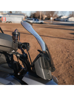 Engineered with precision, this 15.5” tint windshield's innovative design features "hips" at the outer edge that expertly redirect airflow, adding essential downforce to the front of the bike for enhanced stability compared to stock shields. Meanwhile, the strategically positioned "flip" at the top ensures a smoother, less turbulent ride for both rider and passenger.