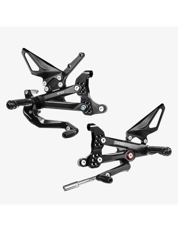 Bonamici Racing rearset systems are milled from an aluminum alloy block using CNC technology, which provides unmatched precision and durability. Bearings are used in these connections to reduce the impact of friction on the gearshift and brakes to ensure maximum accuracy for the rider. Bonamici Racing rearset systems are selected by the leading WorldSBK and other championship teams - BMW, Honda, Aprilia, Yamaha, etc. 100% made in Italy.