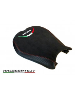 Cover made of "Street Neoprene" in the sitting part, a good non-slipmaterial with suede effect which let you have a grip on the seat and at the same time change easily position. A double red stitching divides the "Street Neoprene" part from the side parts made of carbon effect material to exalts the elegant and sports look of Ducati motorbike.