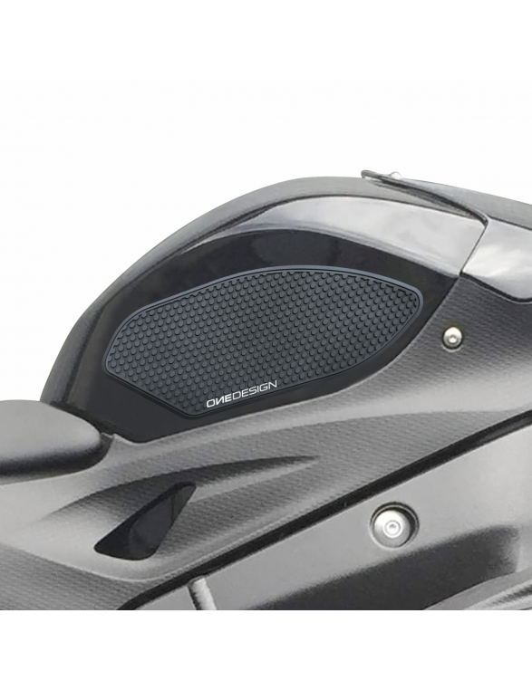OneDesign tank pad made of high resistant coloured resin: risists fading while high strength adhesive keeps the pad attached. Rubber textured material protects your paint from scratches and provide better grip so you can feel confident with your motorcycle. OneDeign tank pads are designed to perfectly fit your motorcycle fuel tank.