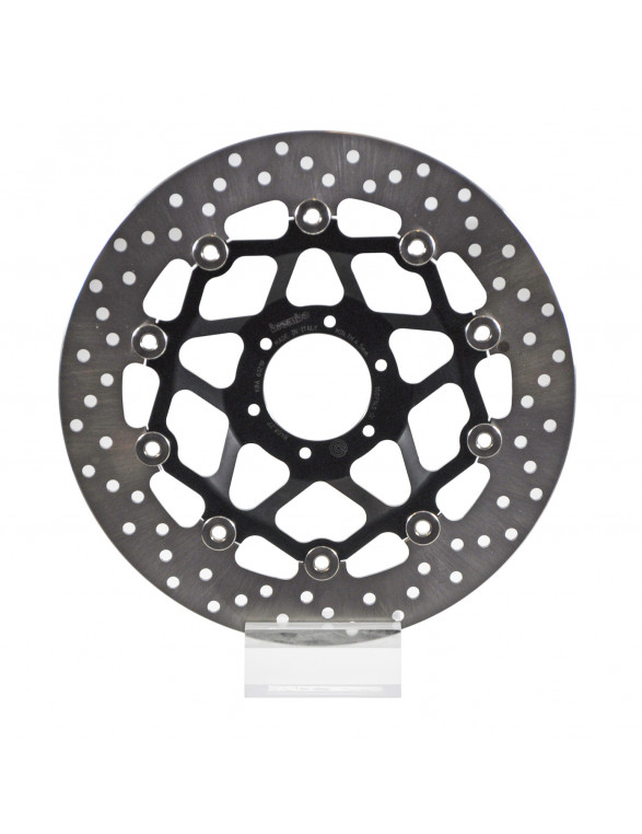 Peldošie diski ir izgatavoti no tikai augstākās kvalitātes materiāliem, lai nodrošinātu nepārspējamu veiktspēju. Tie sastāv no nerūsējošā tērauda bremžu rotora, kas ar 10 stiprinājuma skrūvēm savienots ar CNC apstrādātu anodēta alumīnija sakausējuma korpusu. Balstoties uz milzīgo pieredzi, Brembo ir izveidojis optimālo ģeometriju, pielaides un izmērus katram motocikla tipam un pielietojumam. Specifisku procesu un apstrādes pētījumu rezultātā Brembo bremžu diskiem ir unikāla konstrukcija, kas efektīvāk nodrošina bremzēšanu, vienlaikus uzlabojot izturību pret termisko un mehānisko spriegumu.