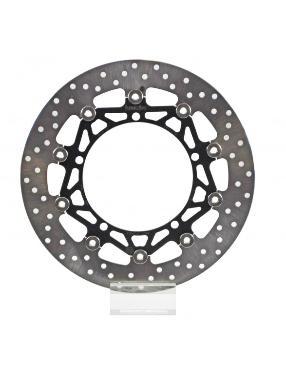 Peldošie diski ir izgatavoti no tikai augstākās kvalitātes materiāliem, lai nodrošinātu nepārspējamu veiktspēju. Tie sastāv no nerūsējošā tērauda bremžu rotora, kas ar 10 stiprinājuma skrūvēm savienots ar CNC apstrādātu anodēta alumīnija sakausējuma korpusu. Balstoties uz milzīgo pieredzi, Brembo ir izveidojis optimālo ģeometriju, pielaides un izmērus katram motocikla tipam un pielietojumam. Specifisku procesu un apstrādes pētījumu rezultātā Brembo bremžu diskiem ir unikāla konstrukcija, kas efektīvāk nodrošina bremzēšanu, vienlaikus uzlabojot izturību pret termisko un mehānisko spriegumu.