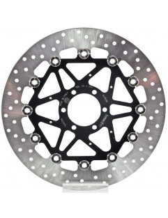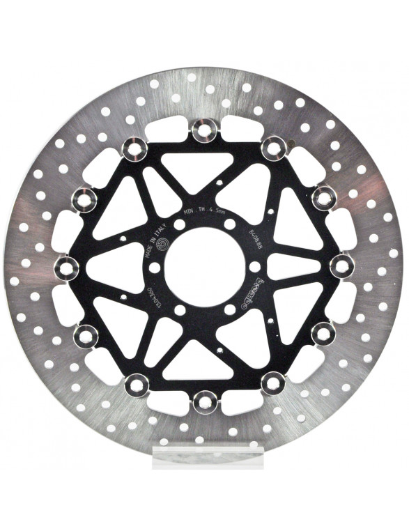 Peldošie diski ir izgatavoti no tikai augstākās kvalitātes materiāliem, lai nodrošinātu nepārspējamu veiktspēju. Tie sastāv no nerūsējošā tērauda bremžu rotora, kas ar 10 stiprinājuma skrūvēm savienots ar CNC apstrādātu anodēta alumīnija sakausējuma korpusu. Balstoties uz milzīgo pieredzi, Brembo ir izveidojis optimālo ģeometriju, pielaides un izmērus katram motocikla tipam un pielietojumam. Specifisku procesu un apstrādes pētījumu rezultātā Brembo bremžu diskiem ir unikāla konstrukcija, kas efektīvāk nodrošina bremzēšanu, vienlaikus uzlabojot izturību pret termisko un mehānisko spriegumu.