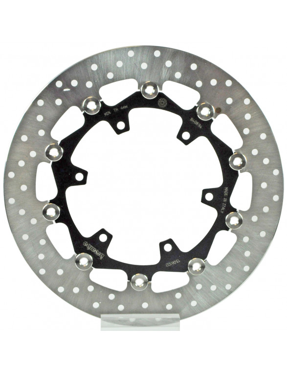 Peldošie diski ir izgatavoti no tikai augstākās kvalitātes materiāliem, lai nodrošinātu nepārspējamu veiktspēju. Tie sastāv no nerūsējošā tērauda bremžu rotora, kas ar 10 stiprinājuma skrūvēm savienots ar CNC apstrādātu anodēta alumīnija sakausējuma korpusu. Balstoties uz milzīgo pieredzi, Brembo ir izveidojis optimālo ģeometriju, pielaides un izmērus katram motocikla tipam un pielietojumam. Specifisku procesu un apstrādes pētījumu rezultātā Brembo bremžu diskiem ir unikāla konstrukcija, kas efektīvāk nodrošina bremzēšanu, vienlaikus uzlabojot izturību pret termisko un mehānisko spriegumu.