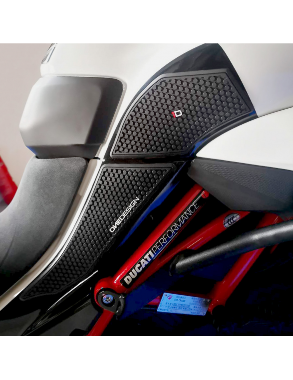 OneDesign bākas uzlīme izgatavota no īpaši izturīgiem krāsainiem sveķiem: tā neizbalē un augstas stiprības līme notur uzlīmi piestiprinātu pie motocikla bākas. Gumijas tekstūras materiāls aizsargā jūsu  motocikla krāsu no skrāpējumiem un nodrošina labāku saķeri, lai jūs varētu justies pārliecināti pārvietojoties ar savu motociklu. OneDesign bākas uzlīme ir izstrādāta tā, lai tā lieliski atbilstu jūsu motocikla degvielas tvertnei.