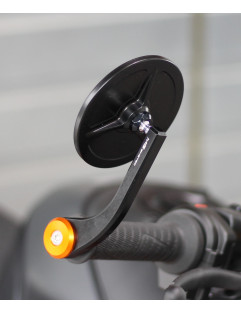 Izturīgs, CNC apstrādāts stūres gala spoguļu komplekts, izgatavots no augstas stiprības alumīnija, pilnībā anodēts melnā krāsā. Piemērots stūrēm ar 14-17 mm iekšējo diametru, piemērots uzstādīšanai kreisajā vai labajā pusē. Lāzera gravēts logotips un nerūsējoša tērauda skrūves.