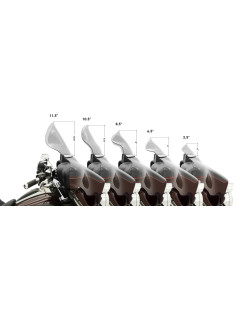 Izmēra izvēle: Izmēram ir nozīme! Pārāk garš vai pārāk īss, un Flare® vējstikls nepārvaldīs gaisu, kā tam vajadzētu. Apskatiet mūsu "Izmēru ceļvedi" tiešsaistē, lai izvēlētos pareizo izmēru, un atcerieties: Klock Werks iesaka vējstikla izmēru, kuram var skatīties pāri, nevis cauri. Melnas krāsu versijas ir necaurspīdīgas un var nebūt piemērotas īsākiem braucējiem, jo ​​tām nevar redzēt cauri.