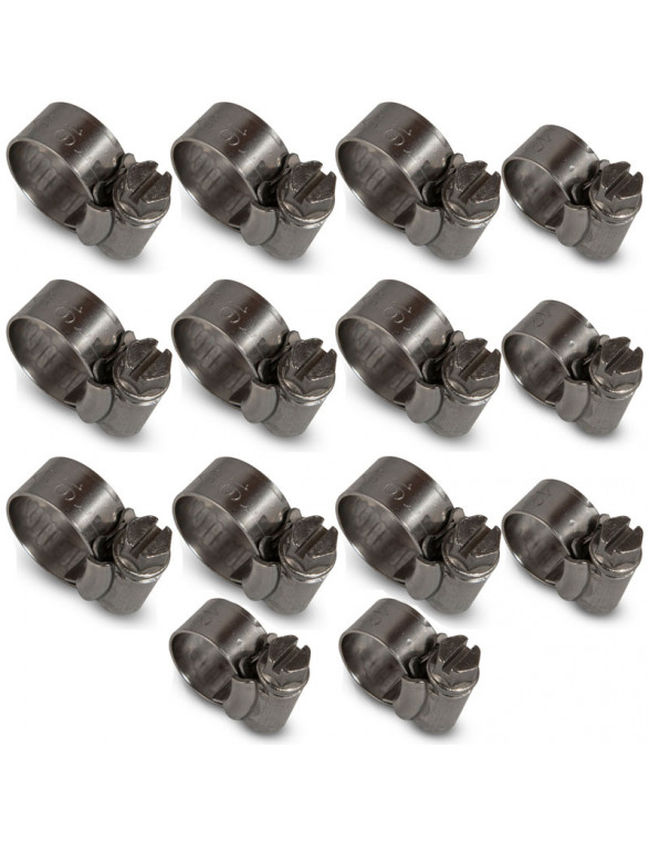 Šo dzesēšanas cauruļu savilces ir ražotas no jūrniecības 304W5 standarta nerūsējošā tērauda, un 13mm platums palielina to izturību un piespiešanas spēku.